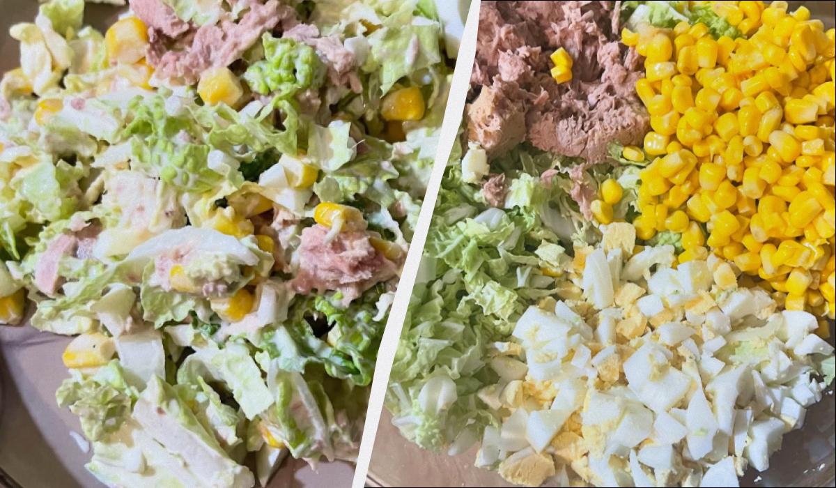 Хрустка капуста вдало підкреслює насичений смак тунця. Додаємо кукурудзу для легкого солодкого акценту і яйце для більшої поживності.